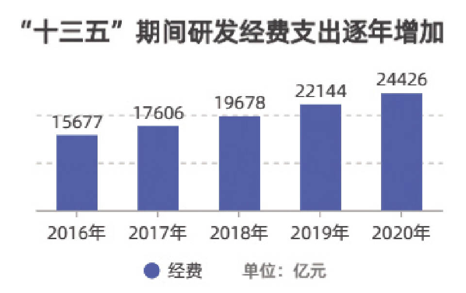 “十三五”期间研发经费支出保持两位数增长