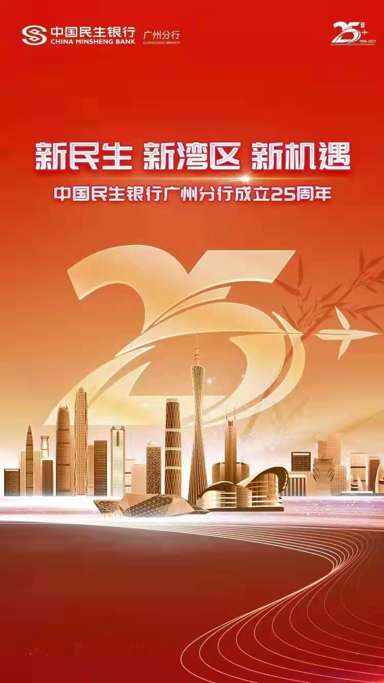 今年是中国共产党成立100周年,是国家“十四五”规划的开局之年,也是民生银行广州分行成立的第25个年头。